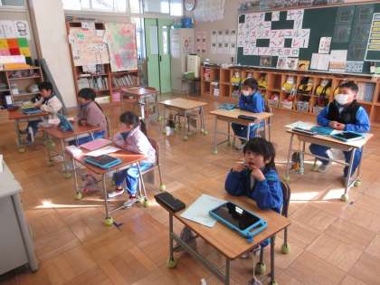 11月21日(木) 1年国語【進んで学ぶ子】 公開日 2024/11/21 更新日 2024/11/21 できごと 「しらせたいな見せたいな」で、めあて「はっぴょうしたり、きいたりして、よいところをつたえあおう」を立て、それぞれが書いたことを発表し、よいところを伝え合いました。