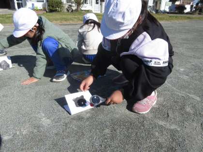 11月21日(木) 3年理科【進んで学ぶ子】 公開日 2024/11/21 更新日 2024/11/21 できごと めあて「虫めがねで日光を集めると明るさや、あたたかさはどうなるか」を立て、実験を行いました。