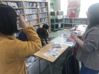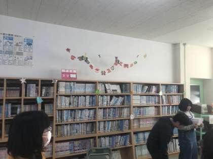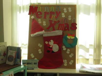 図書ボランティアの方々が来校し、クリスマスバージョンに図書室を模様替えしてくれました。
