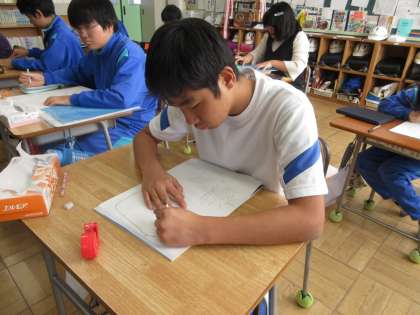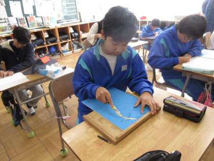 11月25日(月) 6年図工【進んで学ぶ子】 公開日 2024/11/25 更新日 2024/11/25 できごと 版画の学習に入り、下絵を描きトレーシングペーパーを使って版木に写し、作業の早い子は彫刻刀を使って実際に彫り始めました。