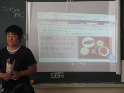 12月3日(火) 6年家庭科【進んで学ぶ子】 公開日 2024/12/03 更新日 2024/12/03 できごと めあて「バランスのよい食事づくり(家庭実践)」を立て、家庭で実践したことの発表会を行いました。