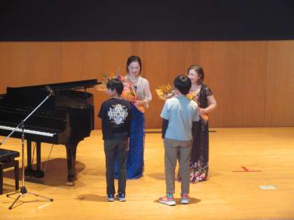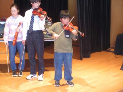 地域づくりセンター鬼石の主催で、「バイオリンとピアノの調べ」が開催され、鬼石中学校の1年生、鬼石小学校の3〜6年の児童と一緒に、鬼石北小学校の3〜6年生も参加させていただきました。その中で、エルガーの「愛の挨拶」、鬼滅の刃の主題歌「紅蓮華」、リストの「村の居酒屋での踊り」、チャイコフスキーの「バイオリン協奏曲ニ短調Op35より第三楽章」を聴かせていただきました。また、代表児童生徒が、バイオリン演奏体験もさせていただきました。とてもよい経験になったことと思います。