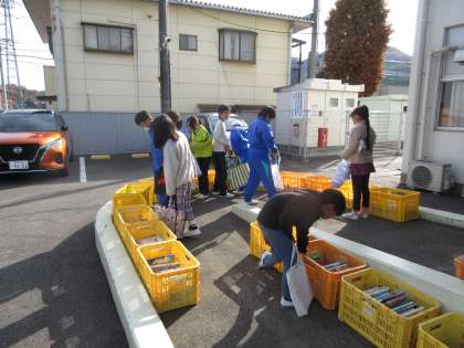 12月4日(水) 1〜4年巡回図書【進んで学ぶ子】 公開日 2024/12/04 更新日 2024/12/04 できごと 今日は、1〜4年生の巡回図書日で、休み時間になると、学年ごとに本を借りに来ていました。