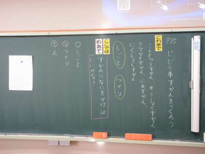 12月5日(木) 1年国語【進んで学ぶ子】 公開日 2024/12/05 更新日 2024/12/05 できごと 「じどう車ずかんをつくろう」で、めあて「ずかんになにをかけばいいかな?」を立て、これまで学習してきたことをもとに「しごと」「つくり」「え」を書く必要があることを確認しました。
