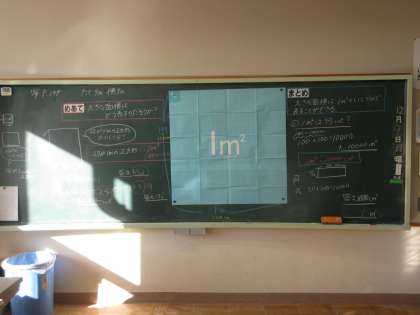 12月9日(月) 5年算数【進んで学ぶ子】 公開日 2024/12/09 更新日 2024/12/09 できごと めあて「大きな面積は、どう表すのか?」を立て、問題「たて9m横7m」をもとに、面積の表し方について学習しました。