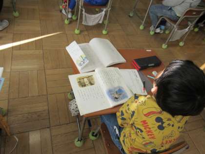 12月17日(火) 1年国語【進んで学ぶ子】 公開日 2024/12/17 更新日 2024/12/17 できごと 物語文「たぬきの糸車」の学習に取り組んでいます。今日のめあては「たぬきとおかみさんの気持ちを考えよう」です。物語文がどのような表現になっているのか気を付けて読み、たぬきとおかみさんの気持ちを想像することができました。