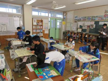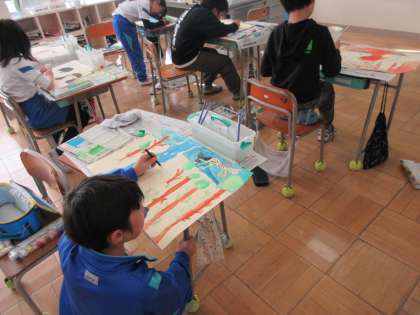 12月17日(火) 5年図工【進んで学ぶ子】 公開日 2024/12/17 更新日 2024/12/17 できごと 読書感想画の色塗りを進めています。細かい部分もはみ出さないように、丁寧に塗り進めています。