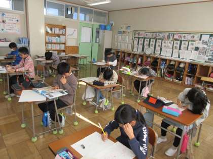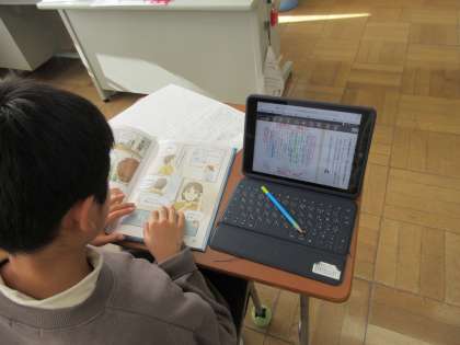 12月17日(火) 4年国語【進んで学ぶ子】 公開日 2024/12/17 更新日 2024/12/17 できごと 「理由や例を挙げて、考えを伝える文章を書こう」をめあてに学習を進めました。自分の興味のある防災について本などで調べ、事実をもとに自分の考えを述べる文章を考えました。