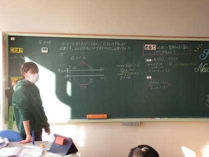 1月9日(木) 4年算数【進んで学ぶ子】 公開日 2025/01/09 更新日 2025/01/09 できごと めあて「小数×整数の計算のしかたを考えよう」を立て、問題文をもとに計算の仕方を考えました。