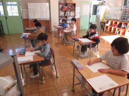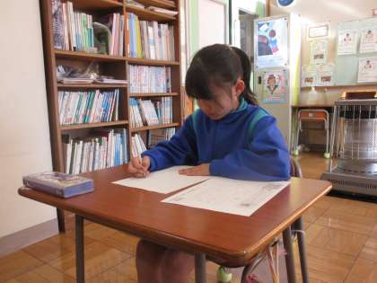 1,2年生は硬筆での書き初め大会となります。どの子も一文字一宇文字、手本を見ながら丁寧に書くことができました。