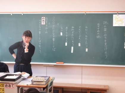1月10日(金) 2年国語【進んで学ぶ子】 公開日 2025/01/10 更新日 2025/01/10 できごと 「しの楽しみ方を見つけよう」で、おすすめの詩を見付け、それをみんなに紹介しました。そして、授業の後半では、新しい単元「かたかなで書くことば」の学習に入りました。