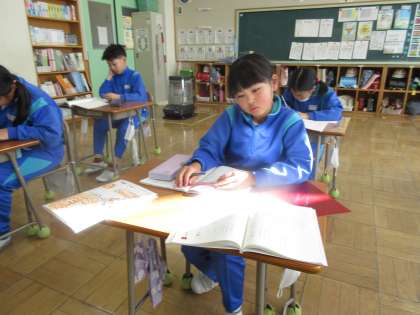 1月10日(金) 3年国語【進んで学ぶ子】 公開日 2025/01/10 更新日 2025/01/10 できごと 新出漢字を学習した後、めあて「6編の詩のくふうを考えよう」を立て、6編の詩の工夫されていることを見付け、発表し合いました。