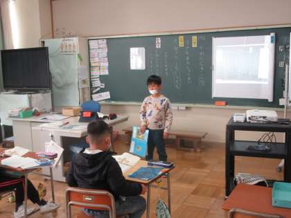 1月14日(火) 1年国語【進んで学ぶ子】 公開日 2025/01/14 更新日 2025/01/14 できごと 「くわしくきこう」で、めあて「くわしくきくために、」しつもんをしよう」を立て、友達の好きな本の紹介を聞き、質問を考え、質問をし合いました。