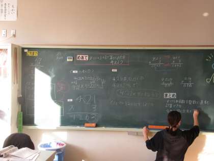 めあて「4.21×3の計算のしかたを考えよう」を立て、既習事項を生かしながら、それぞれやり方を考え発表し合いました。