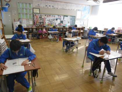 1月15日(水) 6年学力テスト【進んで学ぶ子】 公開日 2025/01/15 更新日 2025/01/15 できごと 2,3時間目に国語と社会の学力テストを行いました。どの子も真剣に取り組んで得いました。