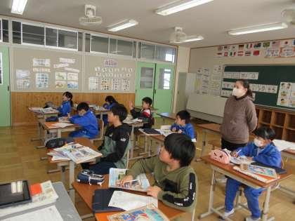 1月16日(木) 5年外国語【進んで学ぶ子】 公開日 2025/01/16 更新日 2025/01/16 できごと 教科書に載っている絵や写真についてのリスニングを行いました。日本の観光地の説明を聞き具体的にどのようなことを話されていたのかを発表し合いました。