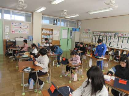 1月16日(木) 4年国語【進んで学ぶ子】 公開日 2025/01/16 更新日 2025/01/16 できごと 自分の気に入った詩を集め、自分オリジナルの詩集づくりに励んでいます。たくさんの詩を集中して読み、みんなに紹介したい詩を探すことができました。