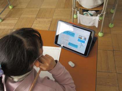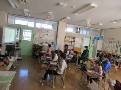 1月16日(木) 4年総合【思いやりのある子】 公開日 2025/01/16 更新日 2025/01/16 できごと 福祉学習において、子どもたちは今まで盲導犬や車椅子の役割などについて調べ学習を行ってきました。ペアになって調べたことをタブレットにまとめ、みんなの前で発表しました。絵などもまじえて、とても分かりやすいプレゼンテーションができました。