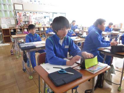 めあて「変わり方に着目し、比例か比例でないか考えよう」を立て、比例の問題に取り組みました。