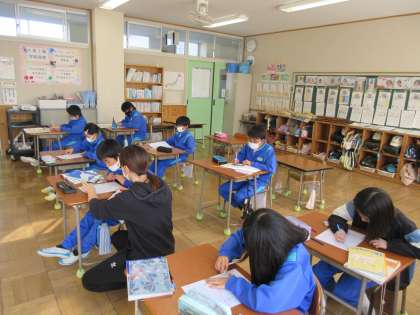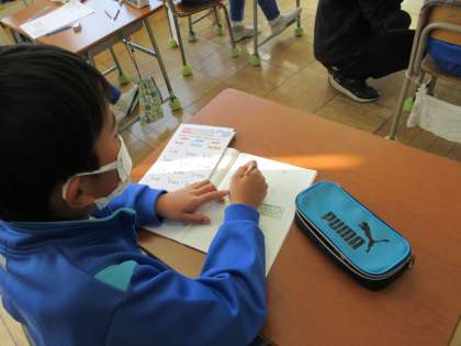 「あまりのある小数÷整数の筆算のしかたを考えよう」をめあてに学習に取り組みました。たくさんの計算問題に取り組むことで、着実に計算力を付けています。