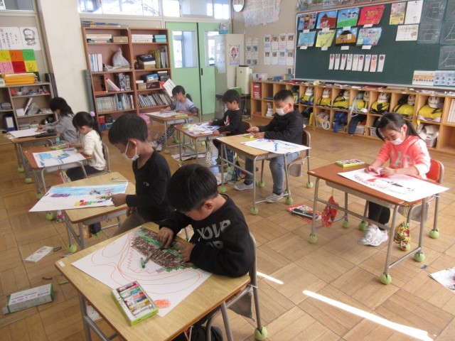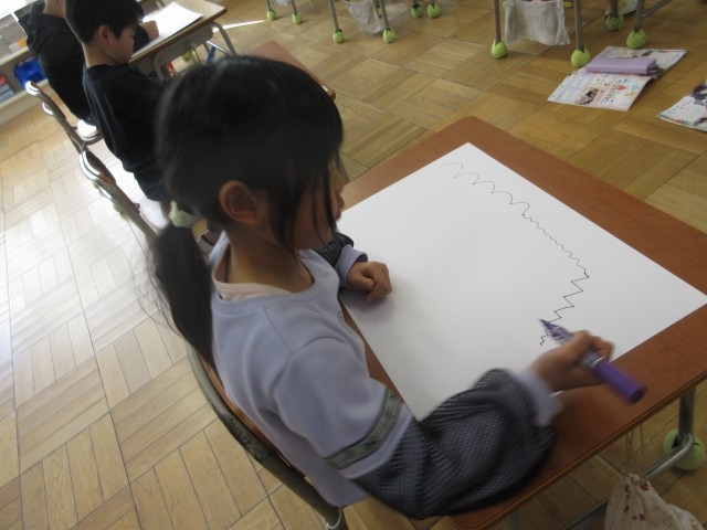 2月25日(火) 1年図工【進んで学ぶ子】 公開日 2025/02/25 更新日 2025/02/25 できごと 「せんのぼうけん」で、めあて「せんでぼうけんしよう」を立て、いろいろな線を引きながら絵を描きました。 +2