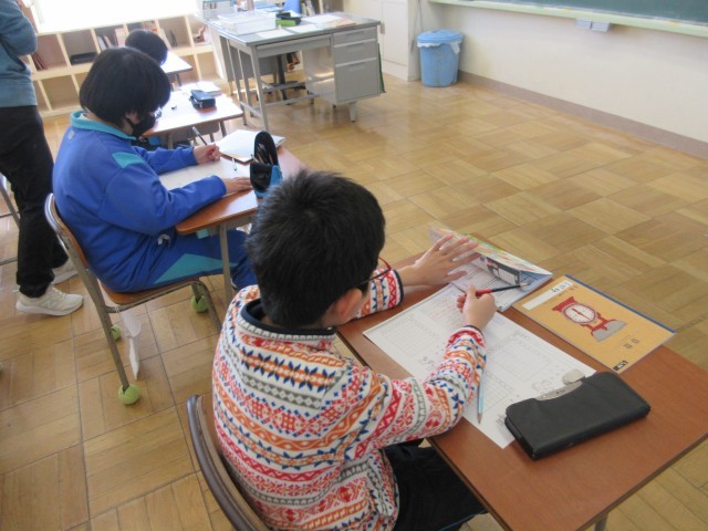 今までの学習で、どのくらい計算力がついているか確認するための練習問題に取り組みました。今まで習ったことを、よく思い出し、集中して学習に取り組むことができました。