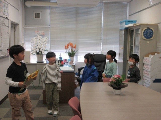 4月17日(木) 1年・2年 学校探検 【進んで学ぶ子】 公開日 2025/04/17 更新日 2025/04/21 できごと 4時間目,2年生が1年生を連れて学校探検です。校長室にも来てくれました。2年生の上手な説明を1年生がよく聞いていました。