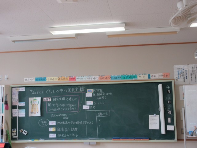 「国民主権の考えは、国や市の取組にどう反映されているのか」をめあてに学習を行いました。教科書や資料集をもとに、自己の考えをノートにまとめ、その後みんなで考えを共有することで、めあてに対する考えを深めることができました。