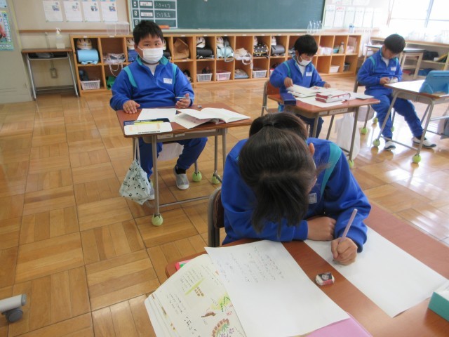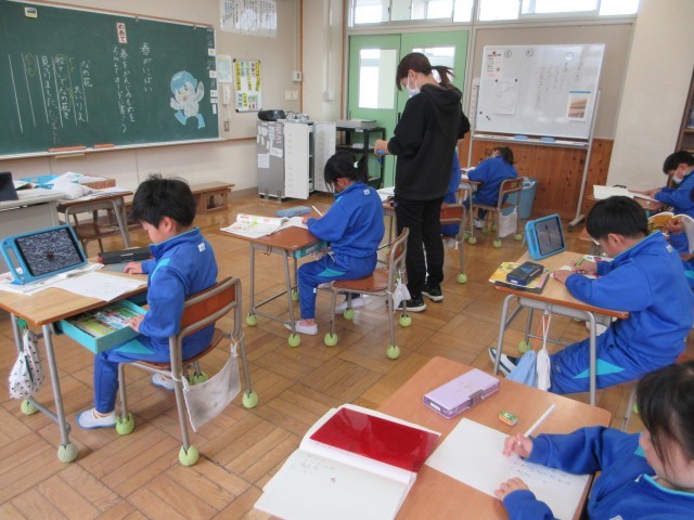 4月28日(月) 2年国語【進んで学ぶ子】 公開日 2025/04/28 更新日 2025/04/28 できごと 「春がいっぱい~春をかんじるものをえらんでカードに書こう~」がめあてです。生活科の時間などに見つけた,春の草花や虫,春の食べ物など,自分で選んで文章と絵で紹介するカードを作成します。丁寧に分かりやすく仕上げます。