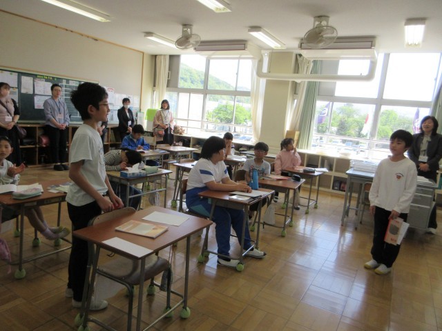 4月30日(水) 授業参観(5年国語)【進んで学ぶ子】 公開日 2025/04/30 更新日 2025/04/30 できごと クラスの友達のよいところを作文して他の友達に伝える活動でした。よいところをたくさん見つけて分かりやすく伝えることができていました。聞いている友達の感想や質問もあたたかく,教室全体がとてもいい雰囲気でした。