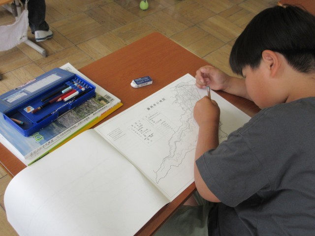 5月14日(水) 3年社会【進んで学ぶ子】 公開日 2025/05/14 更新日 2025/05/14 できごと 「藤岡市の交通はどのように広がっているか」をめあてに学習を行いました。白地図に鉄道や道路の名前を書き込みながら、どのような場所にあるのかを確認しました。