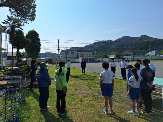 6月になりました。1学期も折り返しです。そろそろ雨の多い時期にもなりますが,今日は気持ちよく晴れた空の下,小中あいさつ運動がありました。5・6年生の代表児童と鬼石中のあいさつし隊の生徒,地域の民生委員の皆さん,教職員も,ハイタッチしながらの元気なあいさつの声が響きました。6月そして1学期後半戦,よいスタートになりました!