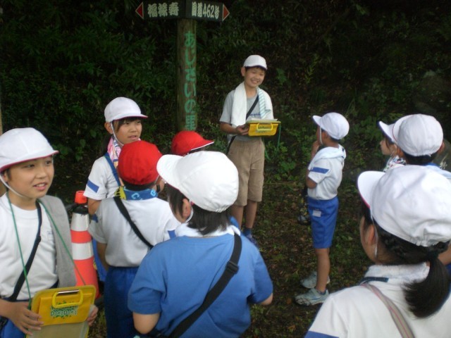 団ごとに,高学年の子供たちが低学年の子供たちに声をかけながら時には手を引きながら歩いて行きます。ところどころで,自然,文化,歴史などについて,6年生がクイズを出しながら解説をしてくれました。今年のあじさいは,天候の関係か,動物による食害か,例年に比べると花が少ないようです。それも学びのひとつになります。
