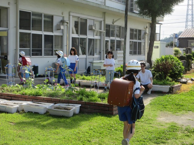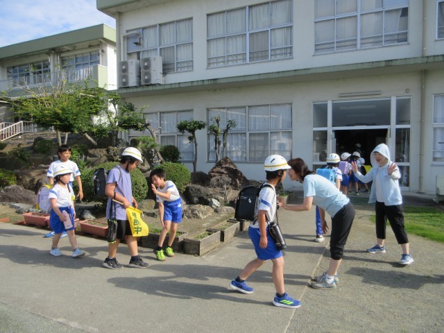 人権集中学習の団別あいさつ運動6日目で最終日になりました。昨日と同様に,朝からすでに強い日差しで気温がぐんぐん上がっています。今日も,お互いの顔を見て,体調を気にしながら,元気のよいあいさつが交わされていました。スローガンのとおり,気持ちの伝わるあいさつで,みんなの心のつながりが感じられます。自分の心も友達の心も大切にできる鬼石北小の子どもたちです。