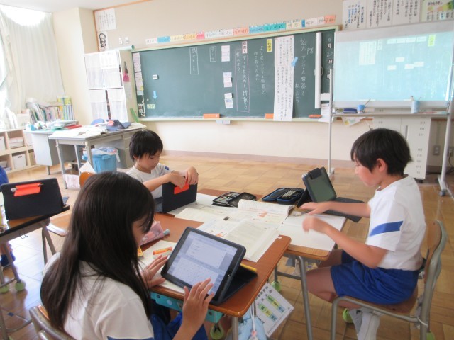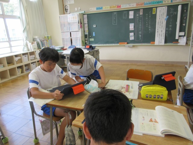 6月23日(月) 6年国語【進んで学ぶ子】 公開日 2025/06/23 更新日 2025/06/23 できごと 6年生は,「デジタル機器と私たち」と題してデジタル機器とよりよく付き合うためにに提案する文章を書きます。まずは,デジタル機器を使うよさと課題をあげ,どう付き合っていくべきかを分かりやすく伝えます。調べたり,意見を出し合ったりして,深めていきます。