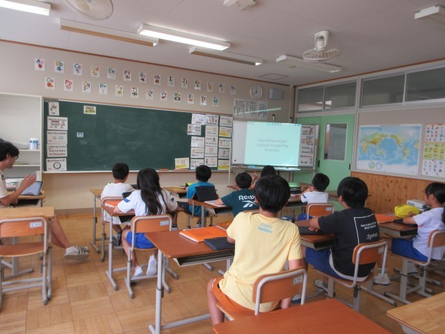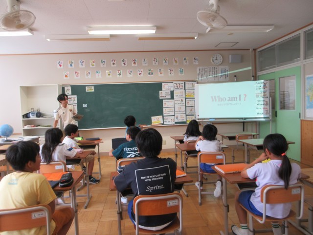 7月1日(火) 6年外国語【進んで学ぶ子】 公開日 2025/07/01 更新日 2025/07/01 できごと 6年生の外国語,"I enjoyed ~. It was fun." のように,楽しかったことと感想を伝え合う活動をします。使いたい動詞や形容詞を復習してから, "Who am I?" 鬼北小先生クイズが始まります。さあ,誰から始まるでしょう,みんなワクワクです。