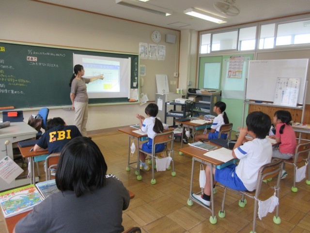 「わたしたちの生活と環境」の学習で、今日は、ごみを少なくする工夫について、みんなで考えました。先生が「めあてはどうなるかな」というと「今日の資料は?」と問う子どもたち。社会科で、毎時間課題について資料をもとに考える学習習慣があるからこその質問です。子どもたちが主体的に学べるよう、指導の工夫に努めています。