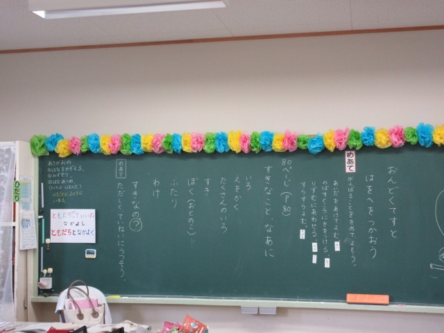 今日は音読のテストをしました。テストを始める前に、一人一人が自分の目標を決めました。「間を開けて読む」「伸ばすところに気を付ける」「リズムに合わせる」「すらすら読む」と、毎日の授業の中で先生から気を付けるよう話されていることをよく考えて、テストに臨むことができました。