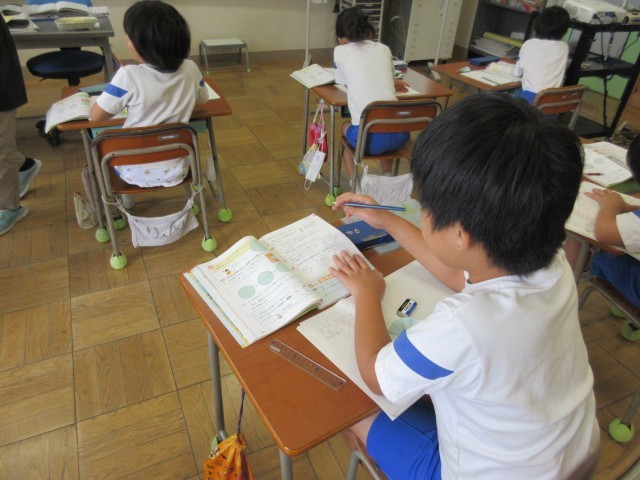「円」についての学習に取り組んでいます。今日のめあては、「半径について調べる」でした。子どもたちそれぞれが、半径とはどのような特徴があるのか、自分なりの言葉で表しました。算数的な用語とその意味は、今後学年が上がったときの学習にも必要な知識です。正しく理解し、定着できるよう日頃の授業の中で指導していきます。