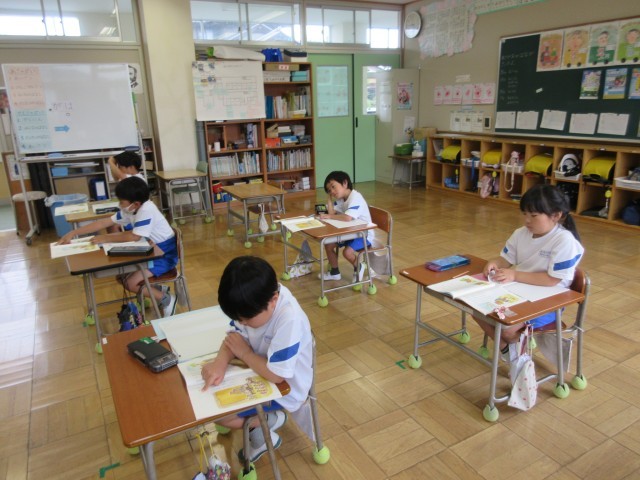 「おむすびころりん」の学習で、「おんどくをはっぴょうしよう」をめあてに学習に取り組みました。大切なことは、リズムよく、すらすら読むこと。自分の好きな表現を見つけてノートに書き、読む練習に励みました。