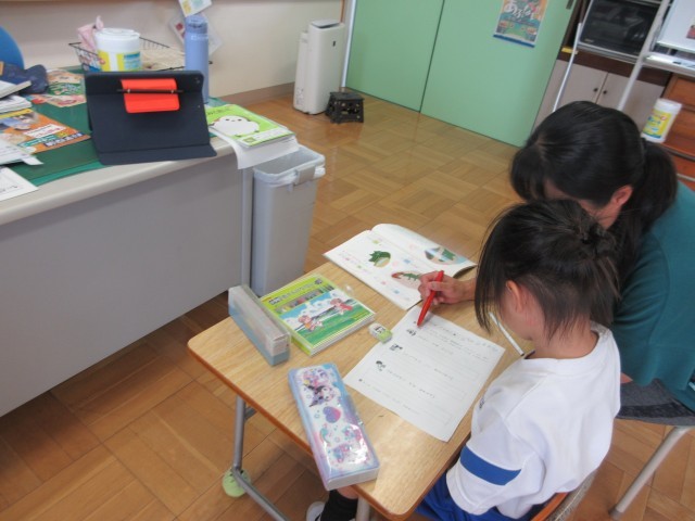 7月11日(金) ひびき国語【進んで学ぶ子】 公開日 2025/07/11 更新日 2025/07/11 できごと 国語の学習で「は、を、へ」をつかう学習に取り組みました。バラバラに示された単語を、順番に並べ、文を完成させる問題に取り組むことで、助詞を正しくつかえるようにしました。