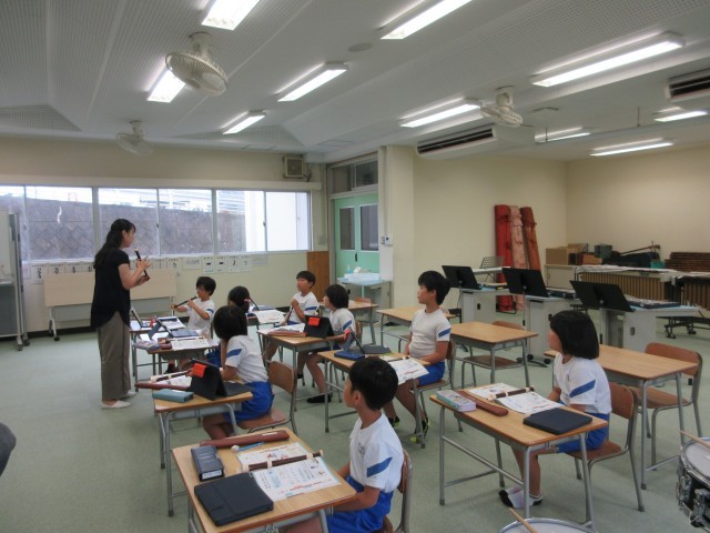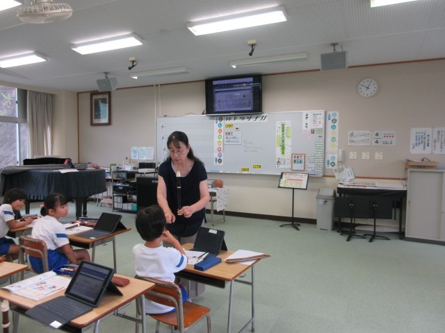 「高いレの音を上手にふこう」をめあてに学習に取り組みました。授業の最後には、一人ずつ高いレの音をふいて発表し、全員が高いレの音を上手にふくことができたとき、「全員合格」と言われて、とっても嬉しそうにしていた姿が印象的でした。
