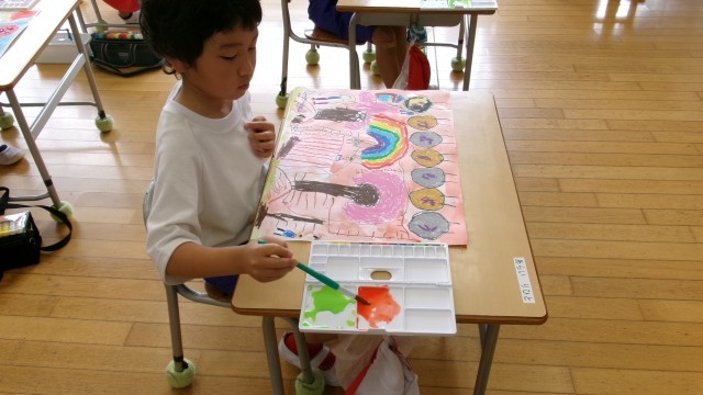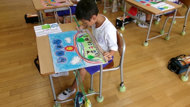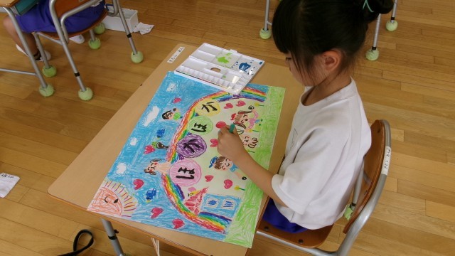 7月14日(月) 1年図工「人権の絵を描こう」【思いやりのある子】