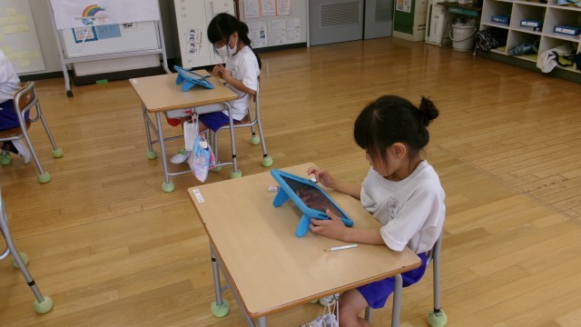 今日の算数は1学期のまとめとして、たしざんとひきざんの復習問題にチャレンジしました。集中して問題を解いている1年生は大変立派でした。1学期の大変成長しました。