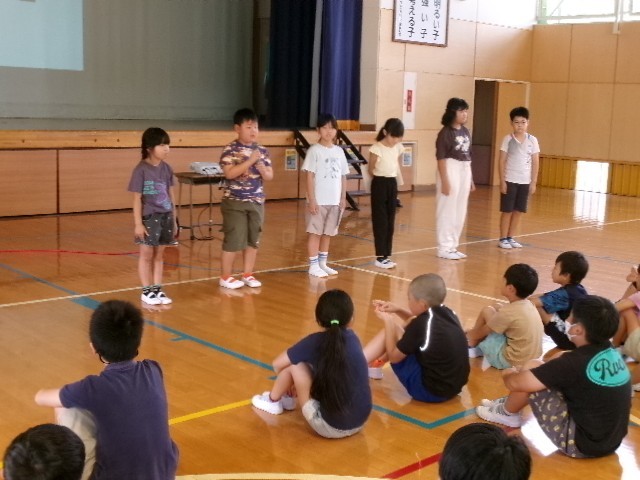 本日から2学期が始まりました。全員が元気に登校でき、何よりも嬉しいスタートがきれました。最初に始業式を行い、校歌を全員で大きな声で歌いました。続いて、校長講話があり、2学期の予定や「勉強を楽むためには、どうしたらよいのか」という話を聞きました。最後に、学年の代表児童から、2学期の抱負について発表がありました。「運動会、持久走大会などで頑張りたい」や「6年間の最後の思い出として・・・」などと思い思いの発表でした。