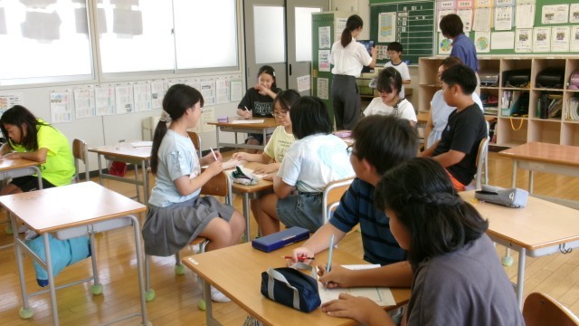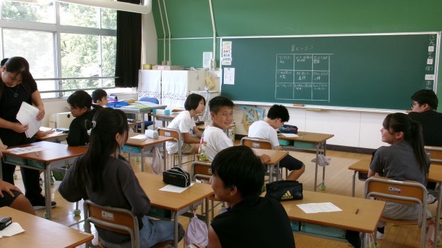 各教室では2学期の目標を書いたり、係を決めたりしていました。