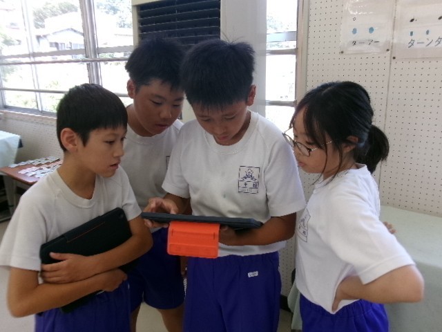 5、6年生は運動会に向けて全校で取り組む「ソーラン」の練習をしていました。昨年までのことを思い出したり、タブレットで動画を見て確認したりしながら取り組みました。「もっと腰を落とすとかっこいいよ。」と、声をかけ合うなど、グループに分かれて教え合う姿に成長を感じました。運動会に向けて5、6年生がリーダーとなって低学年の児童に教えてくれることと思います。