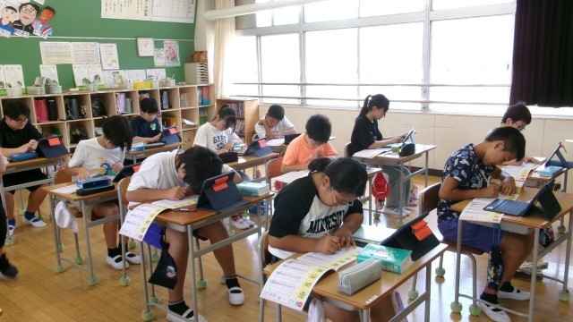 今日は、新しい単元「詩を味わおう」の新出漢字を学習しました。姿勢良く、静かに黙々と取り組む様子が見られ、最高学年として立派に成長してくれています。