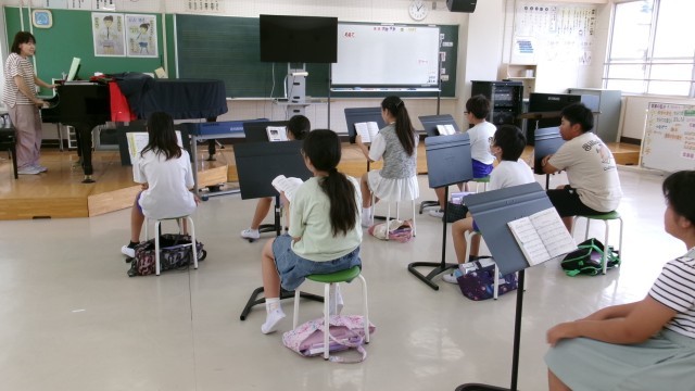 授業の最初に「はじめのいっぽ」を全員で歌ってますが、子どもたち一人一人が大きな声を出してくれるので、人数を感じさせない合唱になっています。すばらしい歌声にいつも感心させられます。