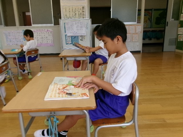 朝の活動は、ラジオ体操でした。各クラスで運動会に向けて練習をしています。気持ちよく体を動かした後は、選んだ本を自分の席で静かに読み始めました。一週間が落ち着いてスタートしました。